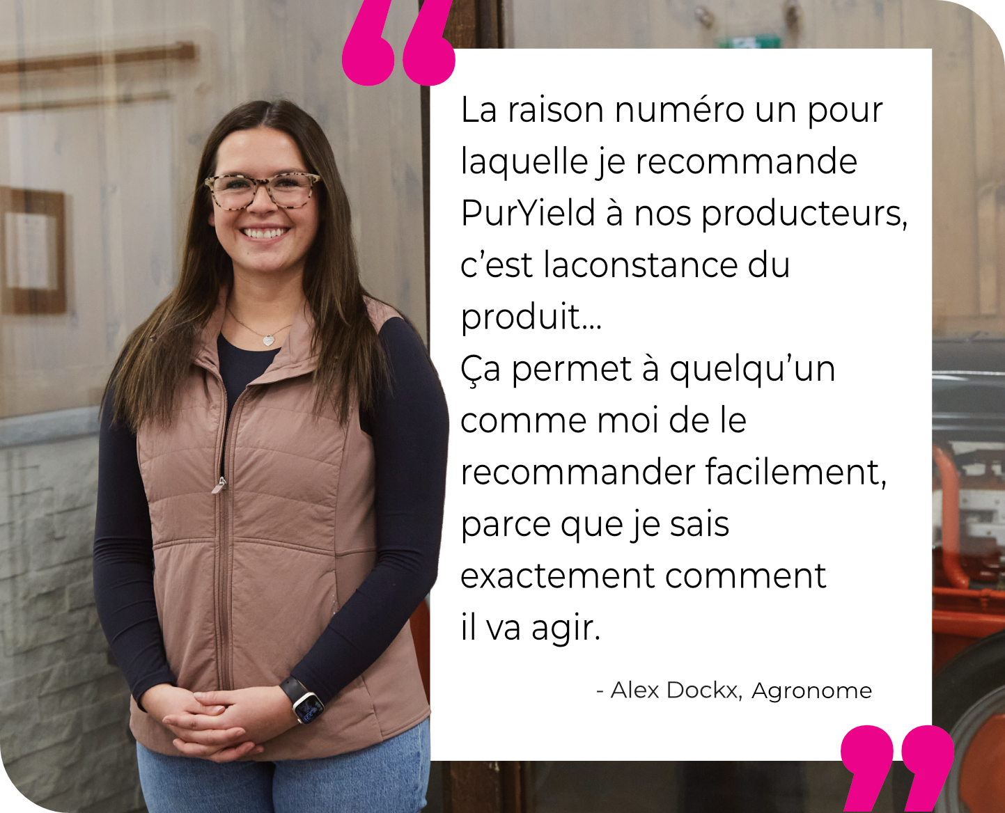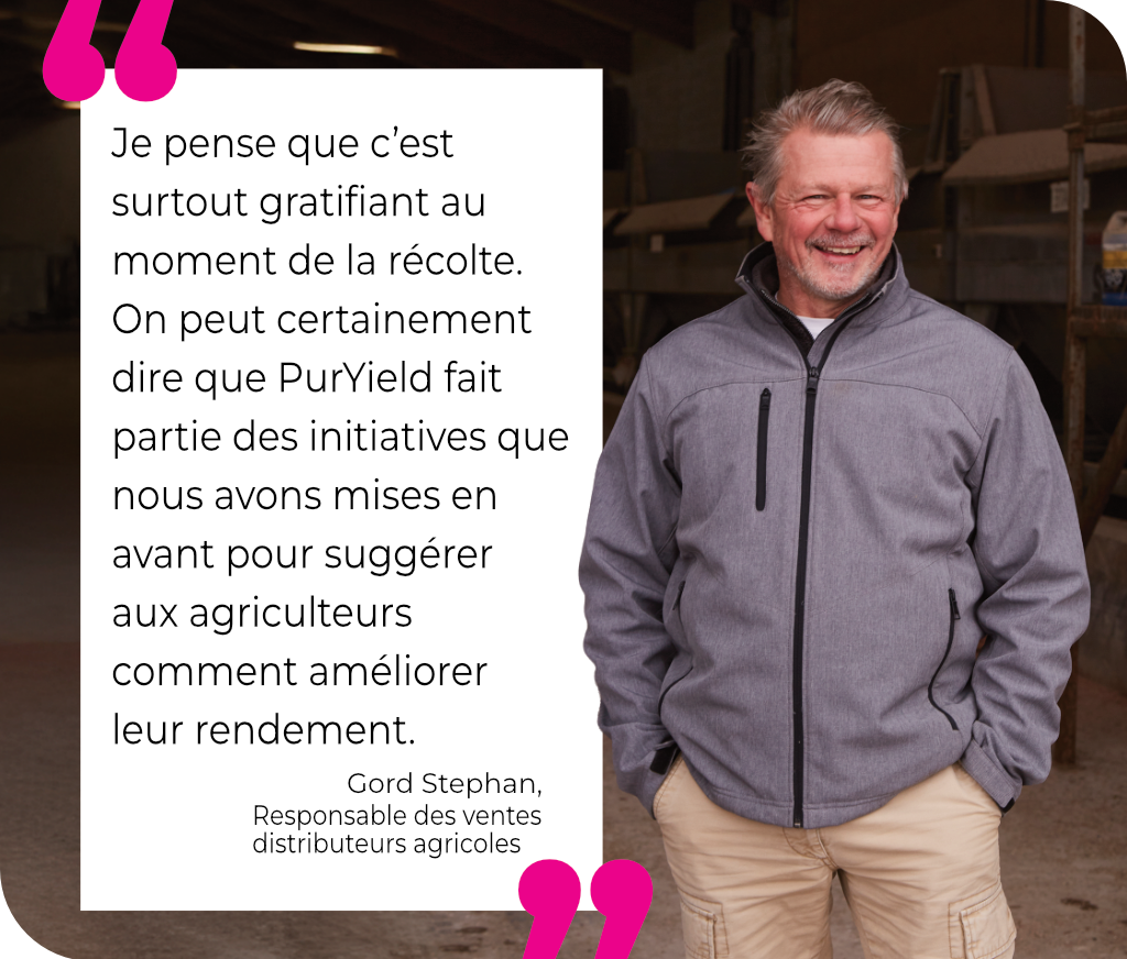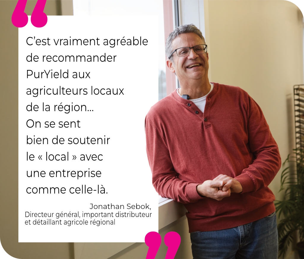 Nous soutenons votre réussite grâce à des conseils d’experts, des ressources techniques et des partenaires locaux dédiés. Pour plus d’information ou pour acheter PurYield, communiquez avec votre détaillant local.